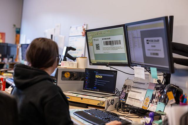 Jayde Callahan, Document Controller, creates product labels using BarTender and adds Amazon Transparency serialization